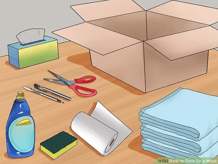 start by gathering all the materials you need, such as boxes, tape, and bubble wrap